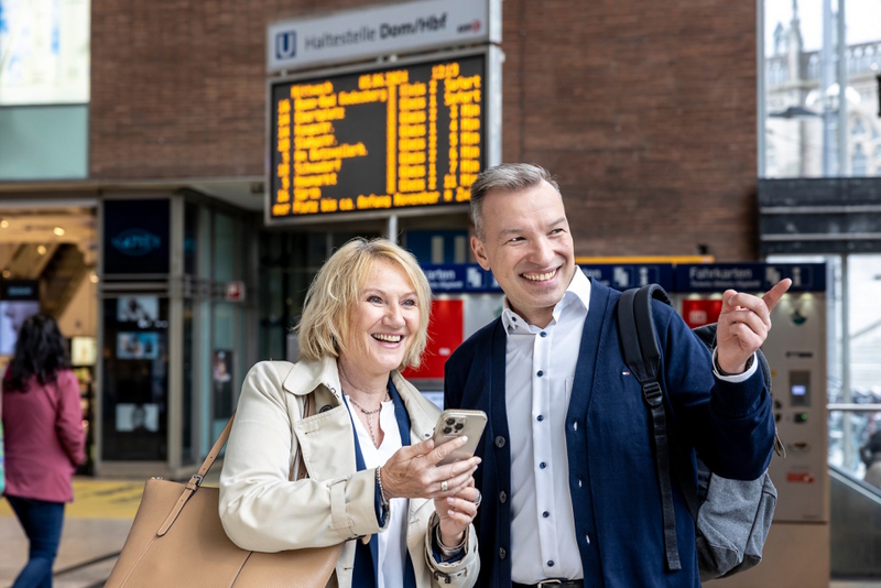 Für alle Fahrgäste, die nur gelegentlich mit Bus und Bahn unterwegs sind, empfiehlt sich der smartphonebasierte Luftlinien-Tarif eezy.nrw. Mit eezy.nrw checken Fahrgäste bequem über die mobil.nrw-App oder die App des jeweiligen Verkehrsverbundes bzw. Verkehrsunternehmens ein, beim Fahrtende checken sie aus und zahlen automatisch in der App. Bezahlt wird nur die kürzeste Entfernung zwischen Start und Ziel plus ein Grundpreis pro Fahrt. Zudem zahlen Fahrgäste für ihre Fahrten mit eezy.nrw in der 2. Klasse derzeit maximal 58 Euro im Monat (ab 01. Januar 2026: 63 Euro), analog zum aktuellen monatlichen Preis des Deutschlandtickets.